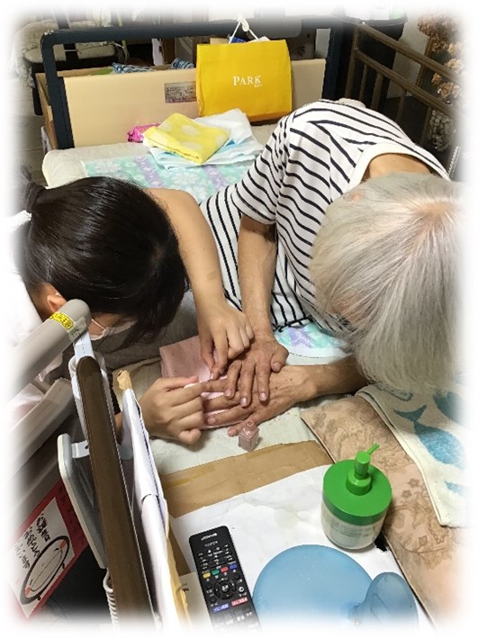 利用者様の娘様が亡くなられた時にも、私が最後に爪をきれいにしたんだよと思い出を話してくださいました。