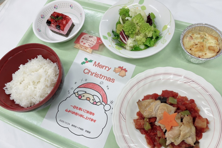 令和7年5月20日 ANAグループより患者さんへ「すずらんの花」と「すずらんのしおり」をいただきました。 すずらんは小さな鈴のような花が連なった華麗な花です。私たちが毎日食べている食材に含まれる栄養素はすずらんの花のように1つ1つ小さいですが、食べ合わせることで健康を呼び込むと考えられています。 栄養課スタッフは入院中の食事を通して、すずらんの花言葉「幸せが訪れますように・