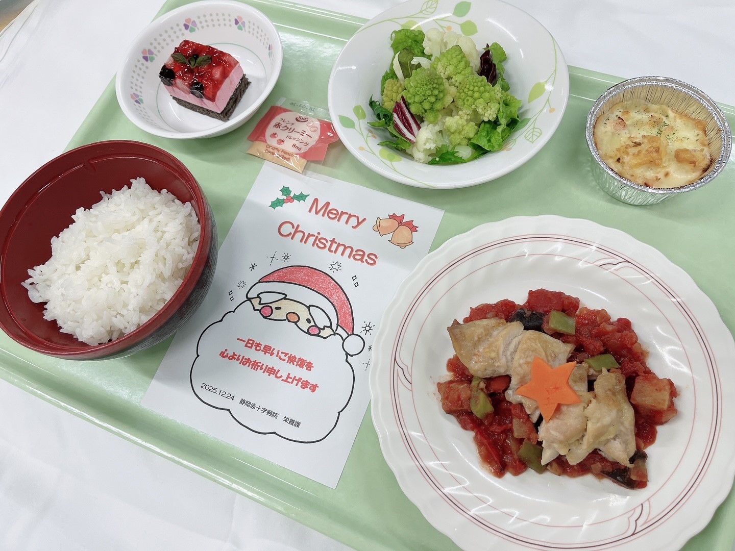 患者さんからも「アイデア抜群」「思いがけないクリスマス献立で気持ちがぽっと明るくなりました」とコメントを頂き、食事からクリスマスを感じてもらうことができました。