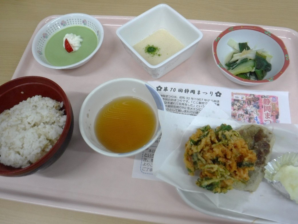 4月3日の夕食は、静岡まつりに合わせ、静岡の特産を盛り込んだ静岡まつり御膳を提供しました。