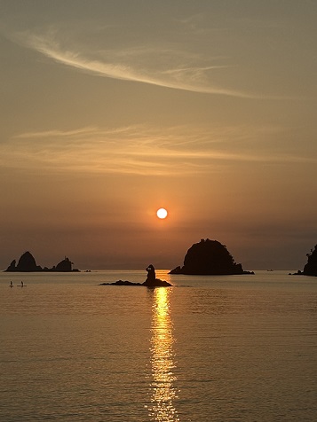 西伊豆地域は自然環境にも恵まれており、周辺には三四郎島のトンボロや天窓洞、黄金崎など、有名な景勝地が点在しています。特に、夕陽が沈む海岸の風景は格別で、穏やかな波音とともに心が洗われるような時間を過ごすことができました。気軽に立ち寄れる温泉も多く、仕事終わりに夕陽を眺めながら温泉に浸かる――そんな贅沢なひとときも大きな魅力です。
