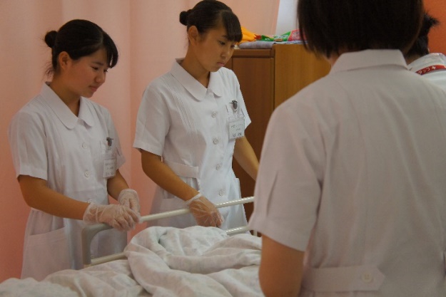 当日は各病棟にわかれ、看護師と一緒に患者さんの身の回りのお世話や点滴の準備、脈の計測などを体験しました。