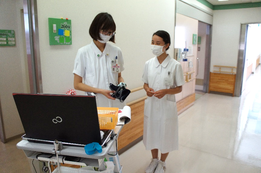 初めて経験することも多く、当初は少し緊張した面持ちでしたが、看護師の話に熱心に耳を傾け、真剣な眼差しで一生懸命に取り組む姿が、とても印象的でした。