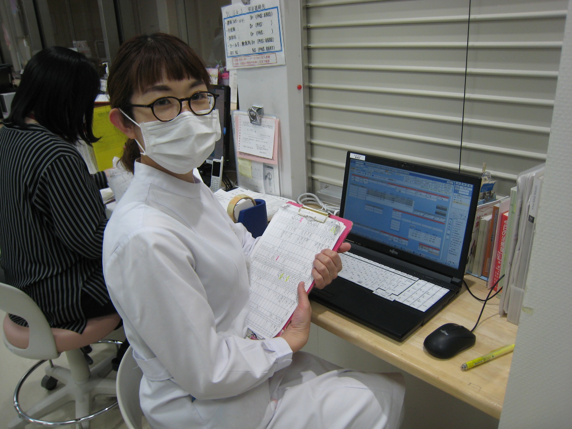 育休明けは育児と仕事を両立させることに不安があったものの、当院の病棟薬剤業務は2病棟3人体制をとっており、子どもの急な体調不良でお休みをいただく場合も、病棟業務に穴があくことがないようサポートされているので安心です。