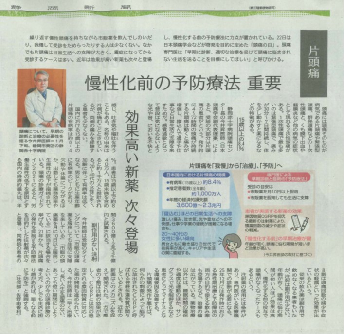 当院では2022年10月より脳神経内科 今井医師を中心に頭痛センターを開設いたしました。